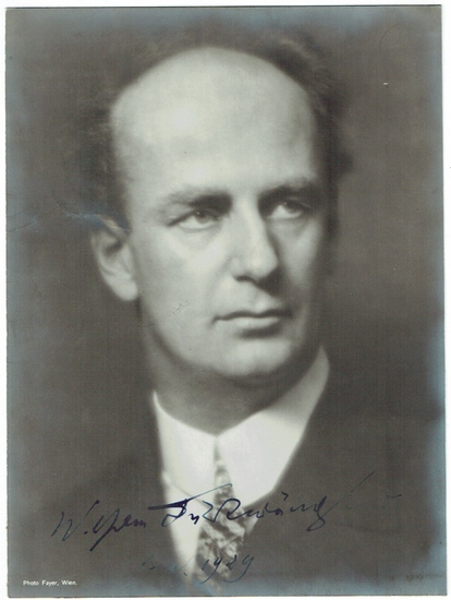 Großformatige Portraitphotographie mit eigenh. Datierung und Unterschrift auf der Bildseite. Basel, 1929. 177 : 238 mm. Rückseitig Montagereste. Hübsches Brustbild des Dirigenten im Halbprofil nach rechts. Photographie: Fayer, Wien.